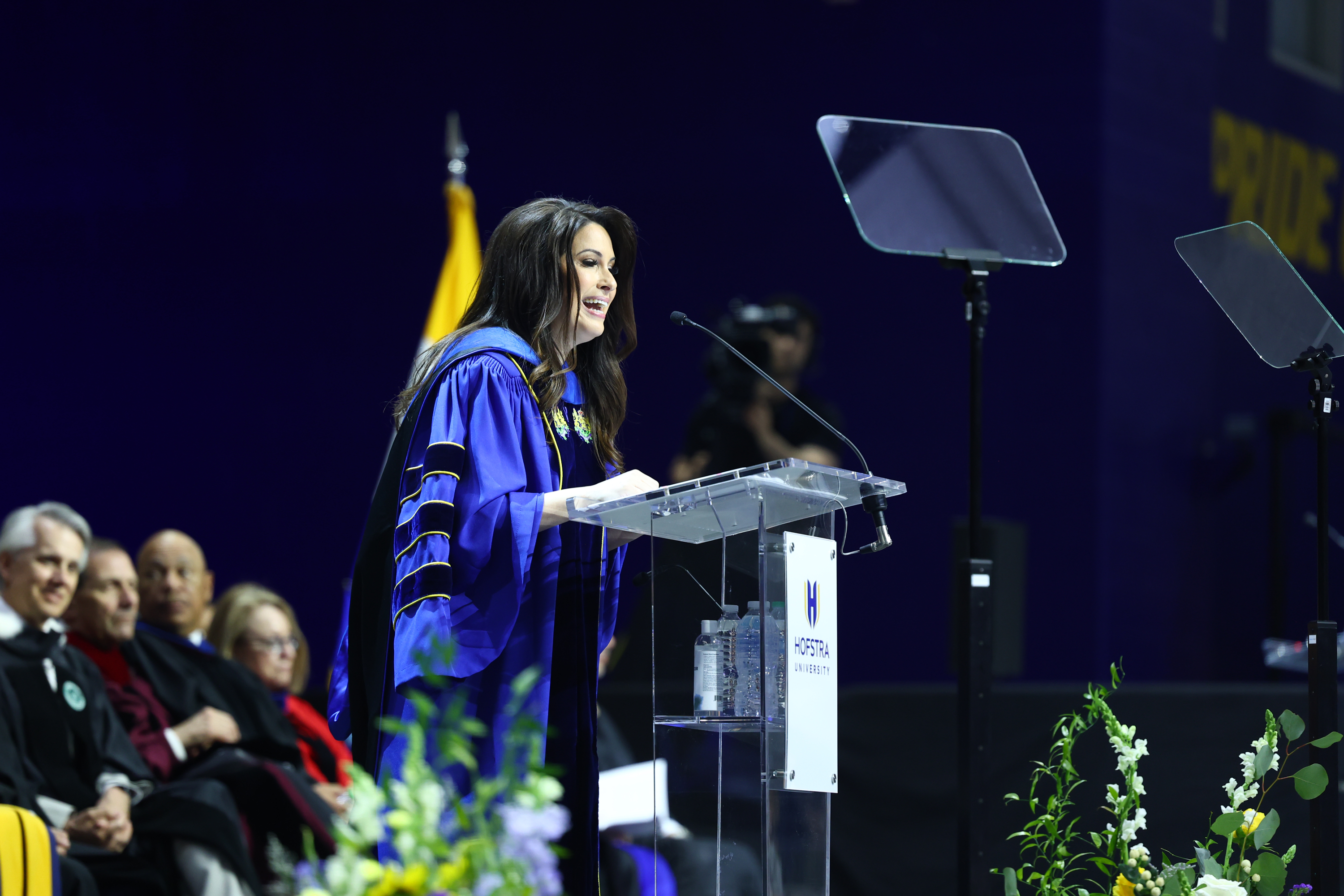 Heather Cohen delivers the commencement address at the 2025 Hofstra University undergraduate ceremony.