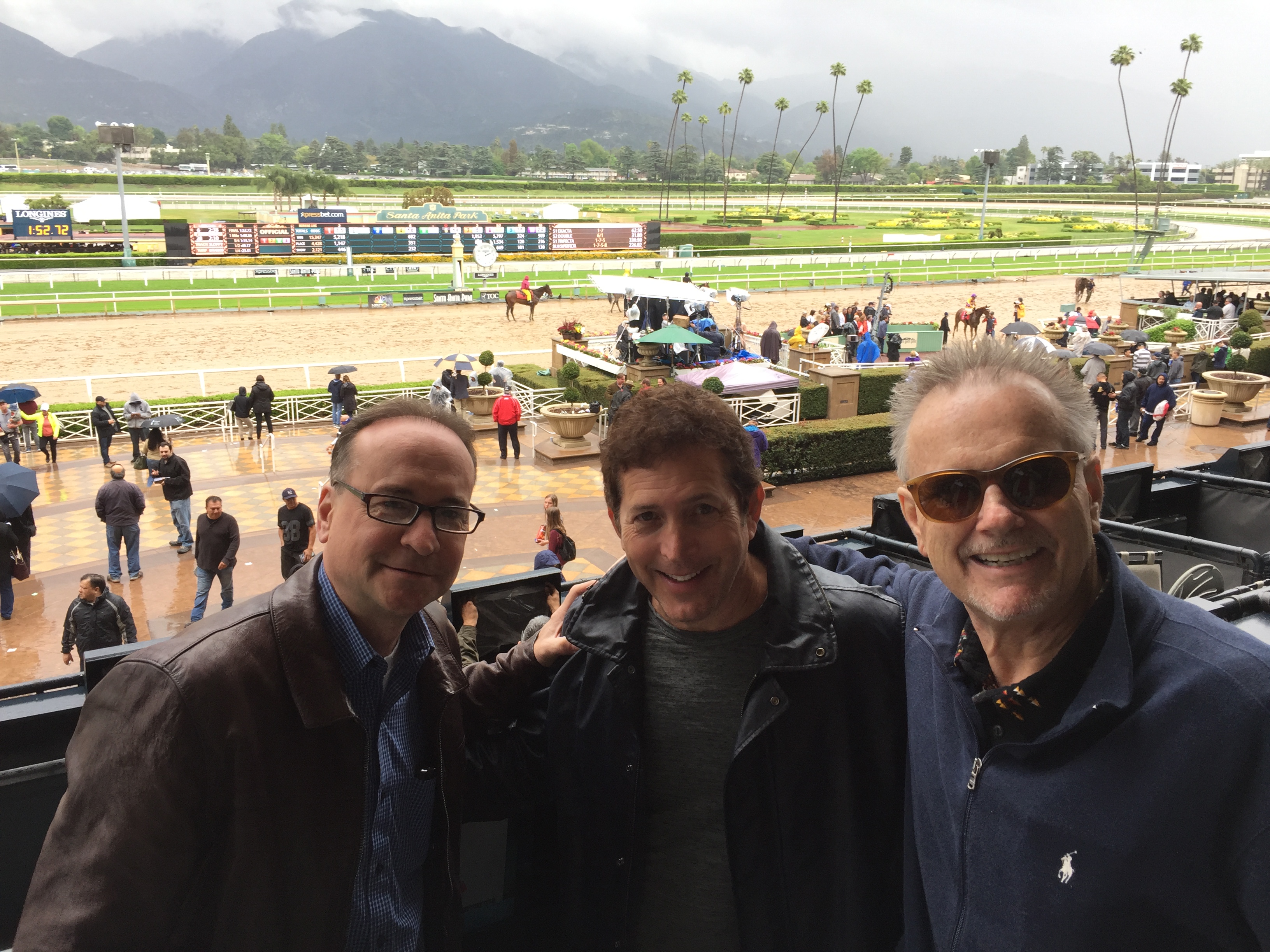 (From L-R) Tim Conway Jr, Eric Weiss and Bob Moore (President, Sports USA Media) at the Santa Anita Park Raceway