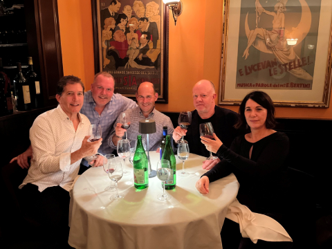 Celebrating the acquisition of Jeff Thomas-created Phantom Producer by Gemini13 Media. From L-R: Eric Weiss, Charles Steinhauer, Spencer Brown, Jeff Thomas & Piera Thomas.