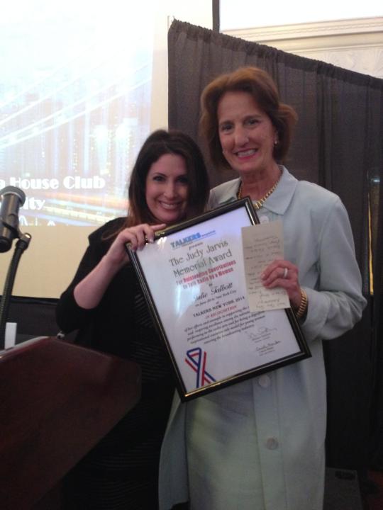 Heather Cohen presents Julie Talbott with the TALKERS 2014 Woman of the Year Award. Heather was the recipient in 2013.