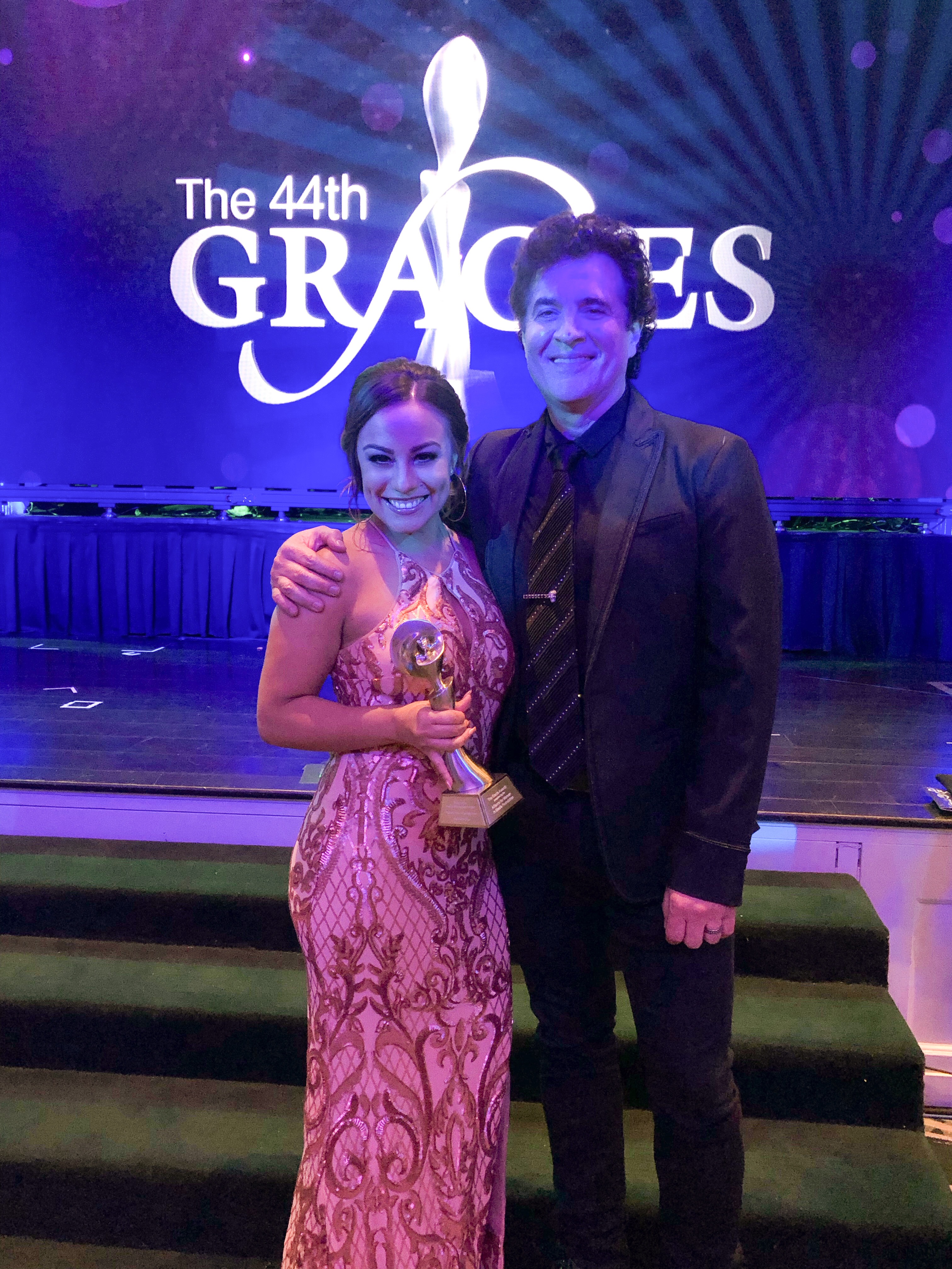 Mike McVay of McVay Media and operations director Amanda Clayton at the 2019 Gracie Awards, Beverly Hills