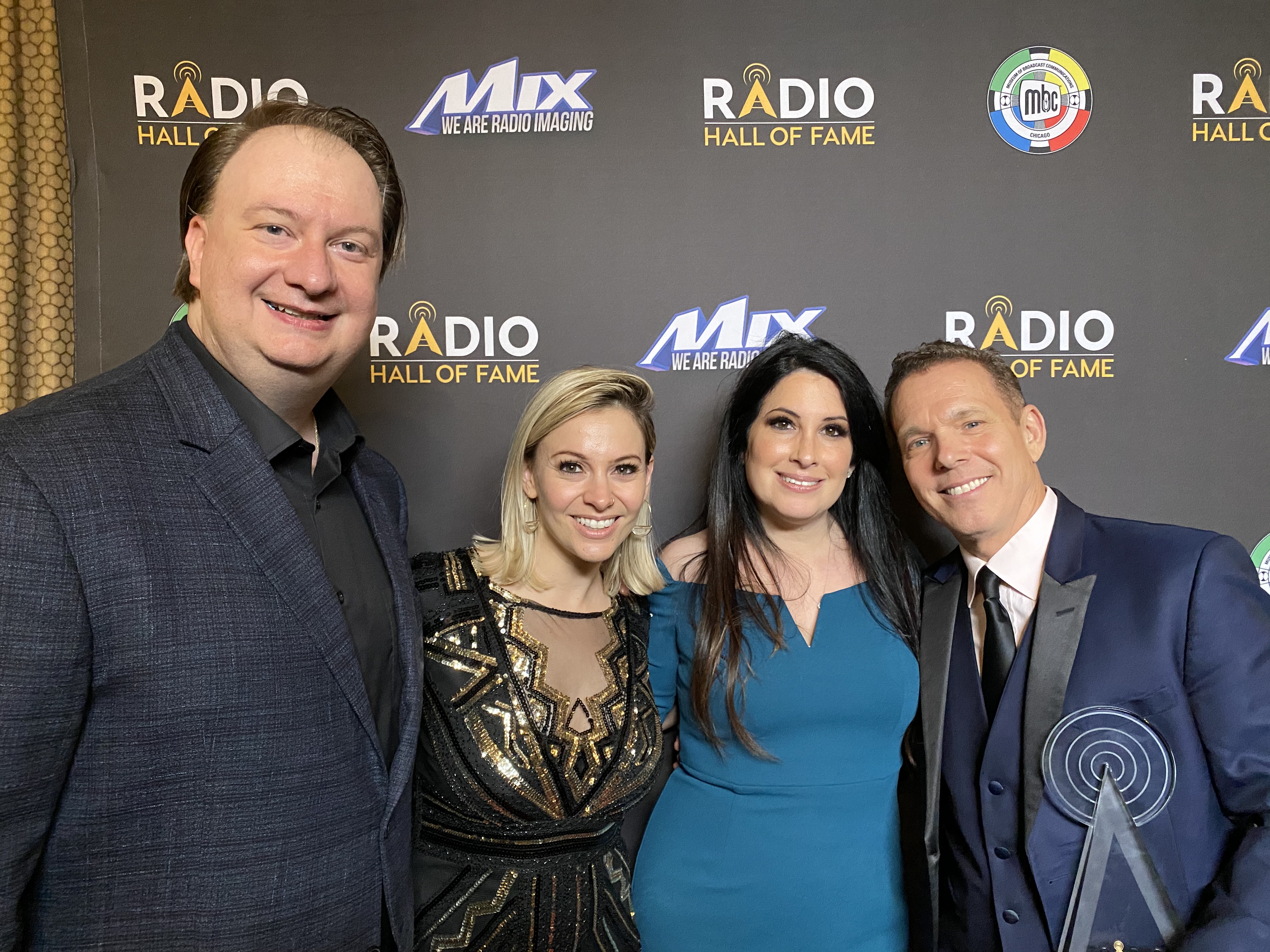 (L-R) Jagger, Wendy Wild, Heather Cohen and Sean “Hollywood” Hamilton celebrating Hollywood’s induction into the National Radio Hall of Fame, 2019