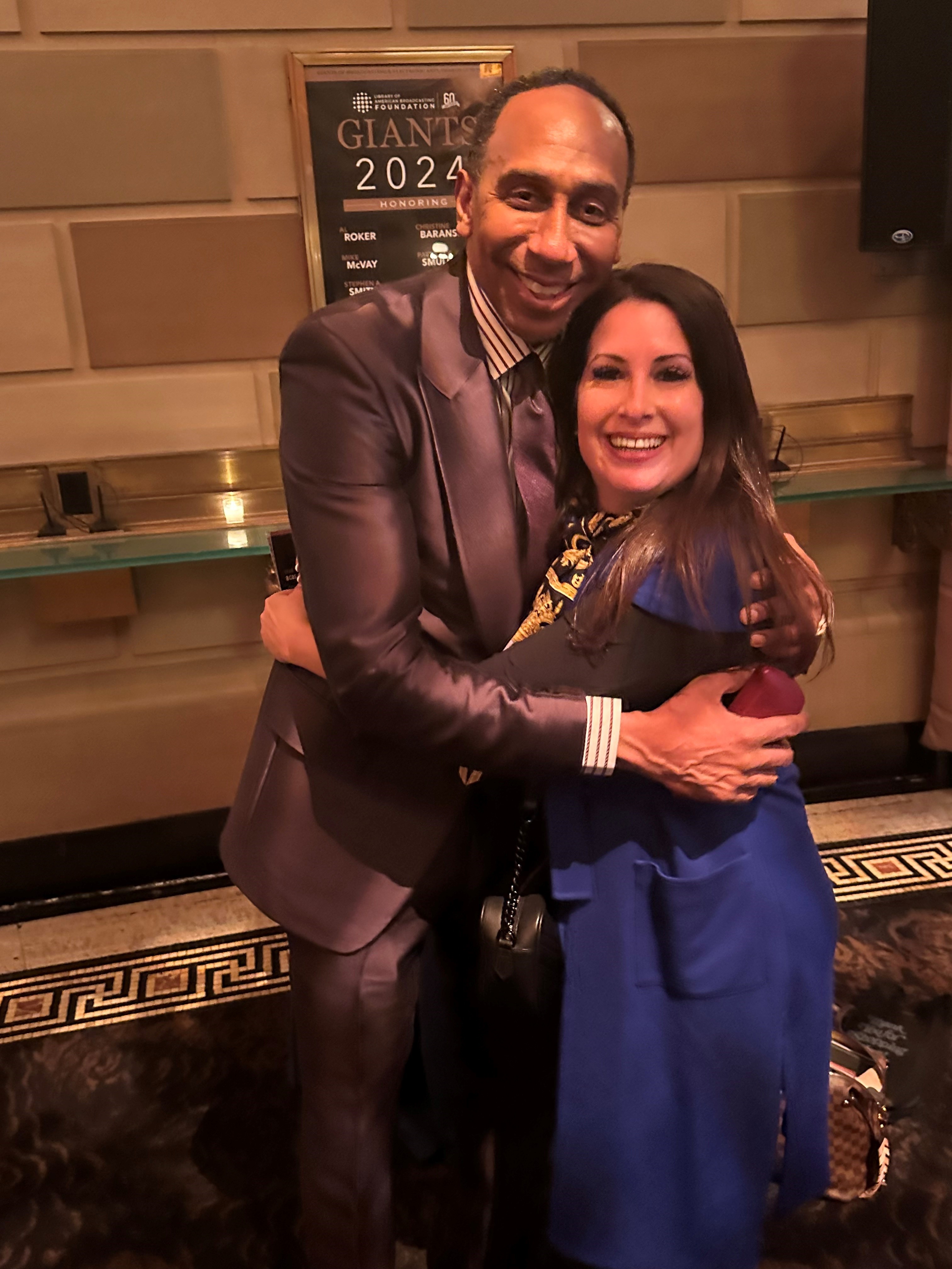 Stephen A. Smith & Heather Cohen celebrating Smith’s induction to the Library of American Broadcasting Foundation’s ‘Giants of Broadcasting’, November 2024